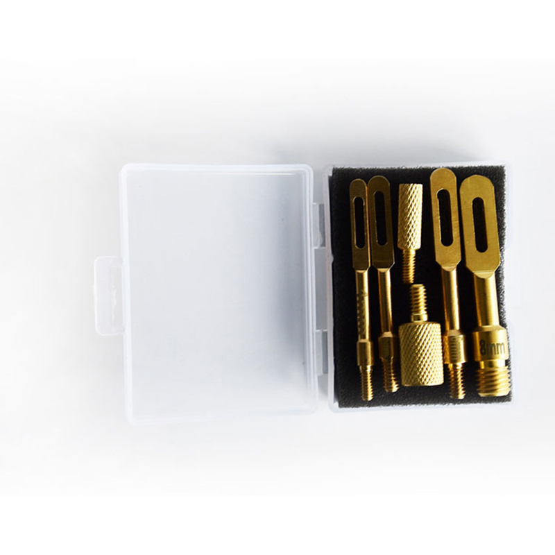 ที่ยึดแผ่นทำความสะอาดปืน 6 Pack/ปลายแบบมีรูและอะแดปเตอร์เชื่อมต่อก้านบรรจุในกล่องขนาดเล็กหนึ่งใบคือชุดทำความสะอาดปืนอเนกประสงค์สำหรับปืนพกปืนไรเฟิลลูกซองที่เหมาะกับปืนคาลิเปอร์ทุกขนาด อะแดปเตอร์สองตัวช่วยให้คุณสามารถเชื่อมต่อเข้ากับแท่งทำความสะอาดที่มีน็อตสกรูต่างกันได้ ใส่แผ่นทำความสะอาดผ่านรูเจาะ หยดตัวทำละลายหรือน้ำมันปืนเพื่อทำความสะอาดรู