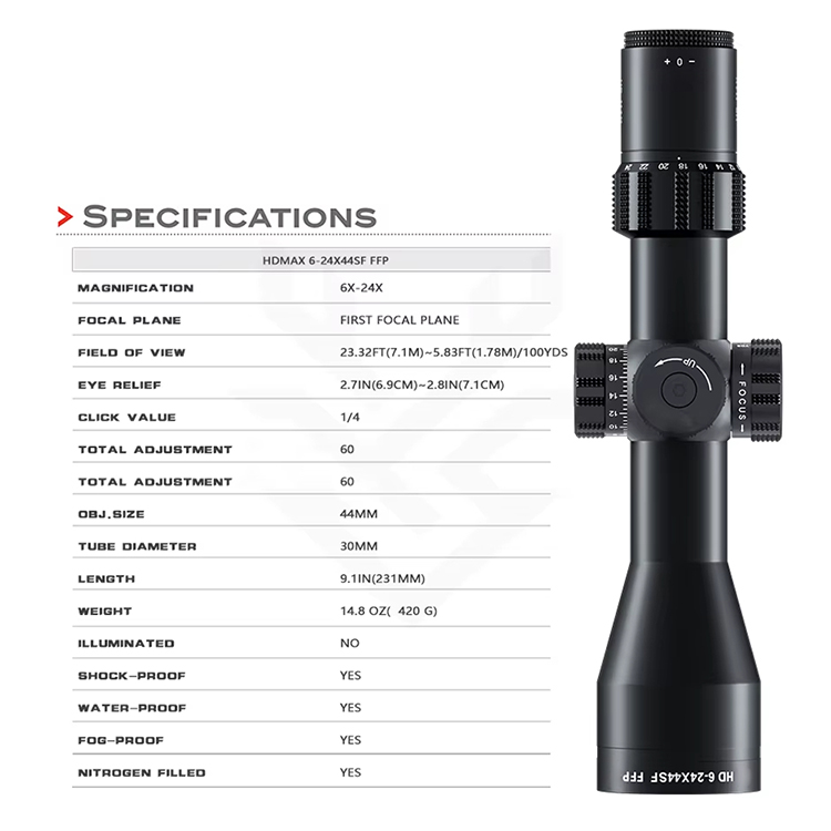 HD MAX 6-24X44 SF FFP HD เลนส์ล่าสัตว์กล้องโทรทรรศน์ตาข้างเดียวขายส่ง