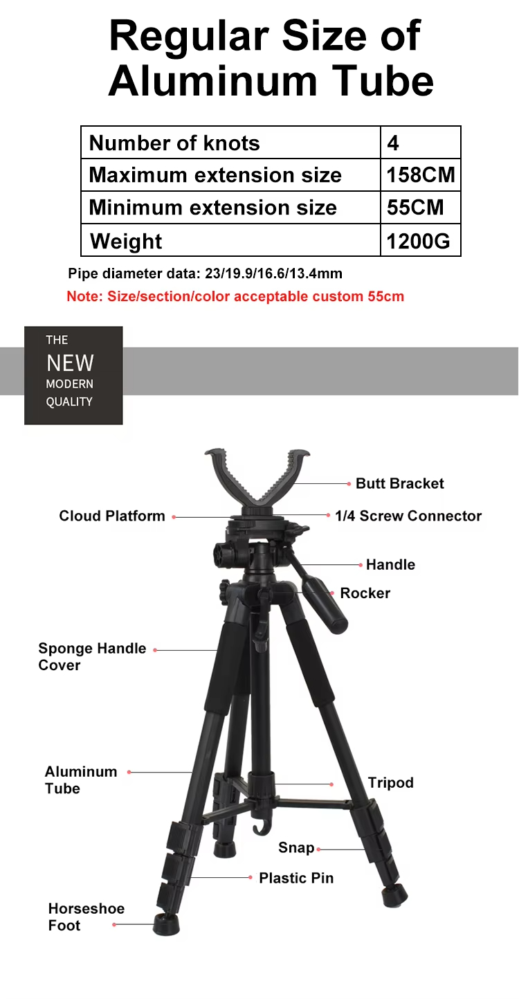 ขาตั้งกล้องอะลูมิเนียม, แท่นยึดปืนที่ทนทาน, ความสูงที่ปรับได้ด้วยไฟฟ้า