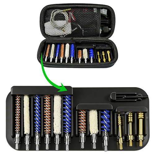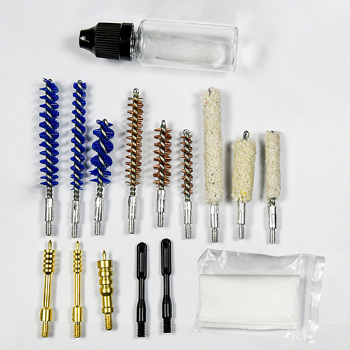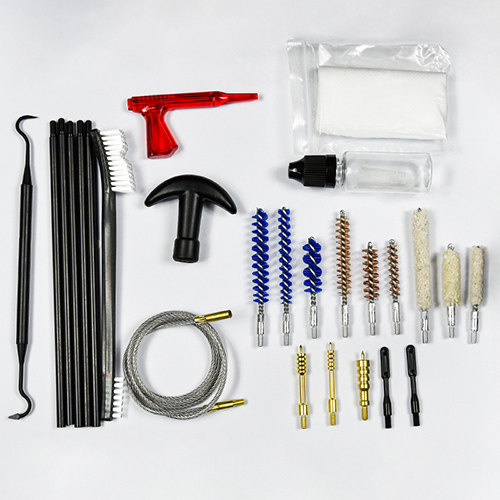 ชุดทำความสะอาดปืนไรเฟิลและปืนพกมี 3 ขนาด ( .22cal. .30cal. 9mm) ผ้าอ็อกซ์ ซองเคลือบ PVC มีซิป แปรงทองเหลือง, ไม้ถูพื้น, แปรงไนลอน, ด้ามทองเหลือง, 5 แท่ง 1 แคลบ. ทรายและสีดำสำหรับเลือก