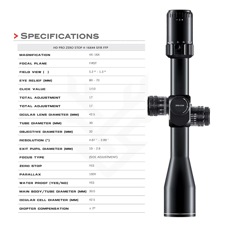 ZERO STOP 4-16X44 SFIR FFP-A เส้นผ่านศูนย์กลาง 30 มม.HD ส่งแสง Zero Stop ขอบเขตการล่าสัตว์ Ffp